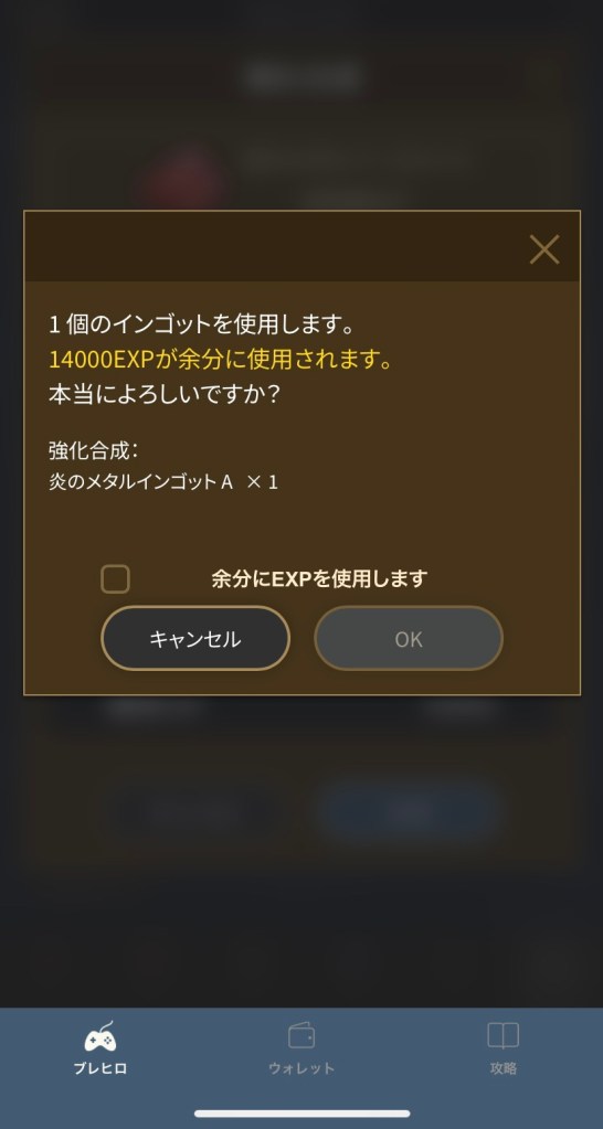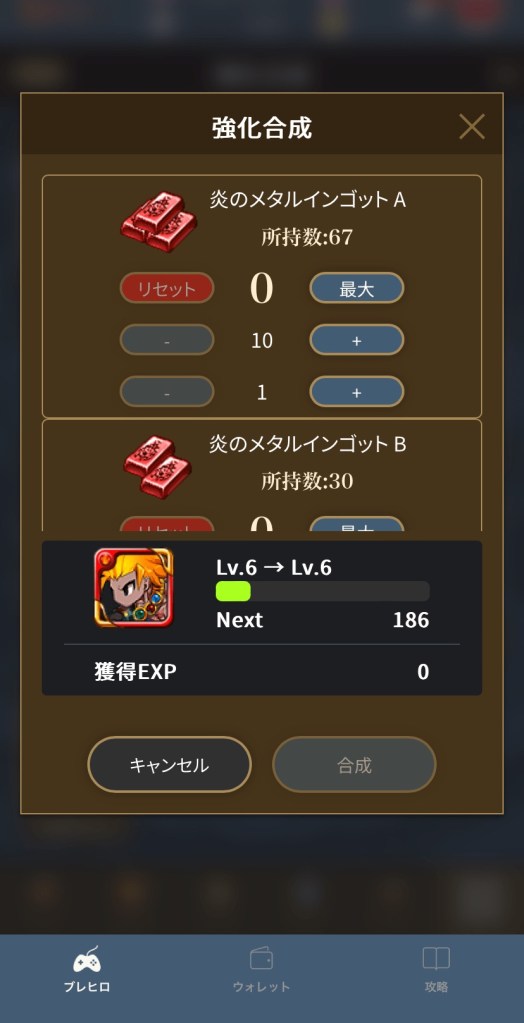 ログインなどでもらえてるインゴットが少しあるはずなので上げたいレベルまで使う(上限以上は上がらない)