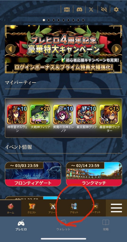 ⭕️の「アセット」を押す
