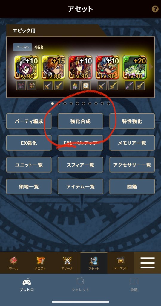 ⭕️の強化合成を押す